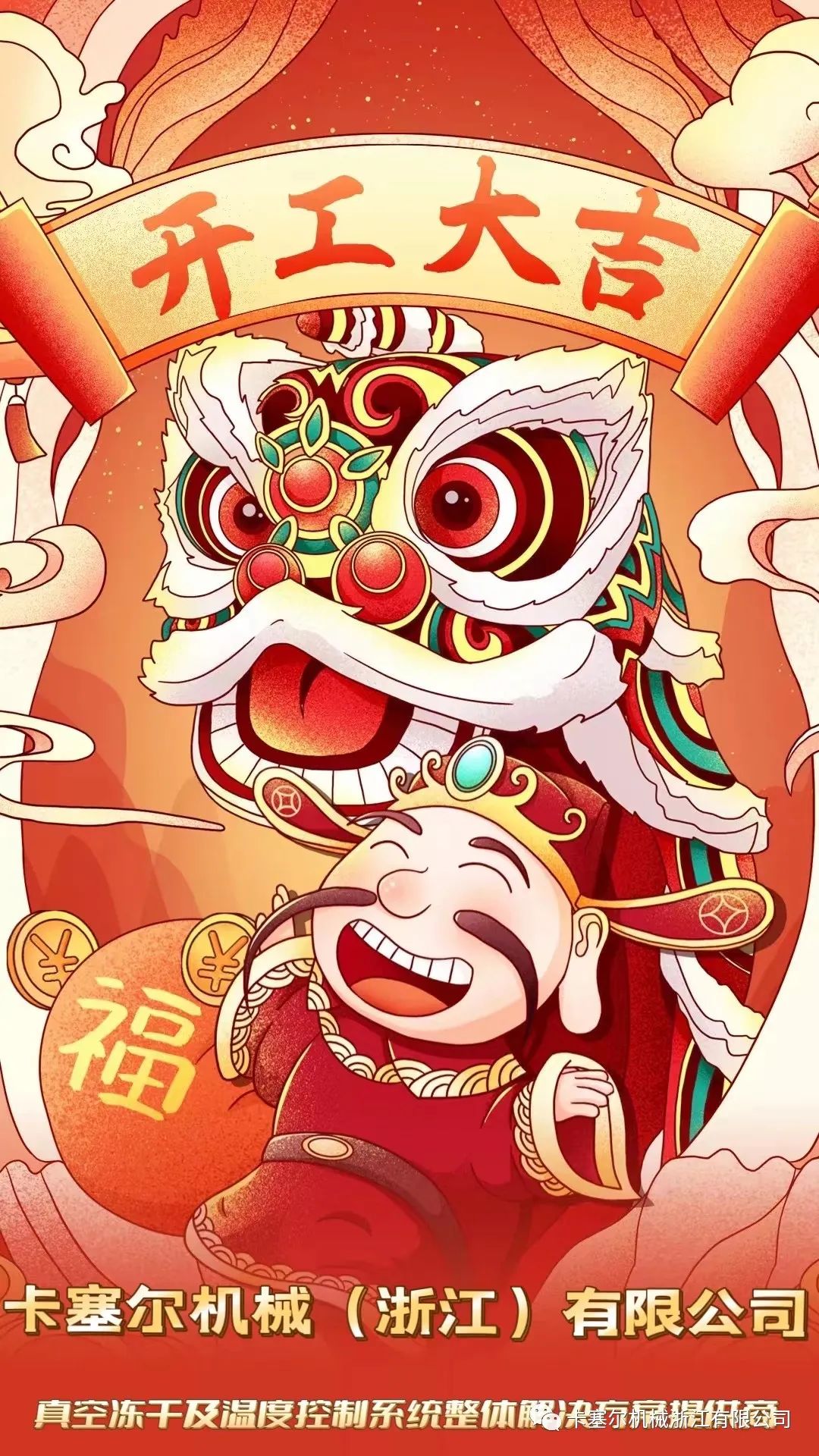 春節(jié)(Spring Festival),即中國農(nóng)歷新年,俗稱“新春”“新歲”“歲旦”等,又稱“過年”“過大年”,是集除舊布新、拜神祭祖、祈福辟邪、親朋團圓、歡慶娛樂和飲食為一體的民俗大節(jié)。春節(jié),轉眼已經(jīng)過去,迎來了新的一年初始的希望??ㄈ麪枡C械(浙江)有限公司,2023年2月2日(農(nóng)歷年十二)開工大吉,迎接開門紅。在此祝愿大家,在新的一年里:生意興隆發(fā),財源滾滾?。?!